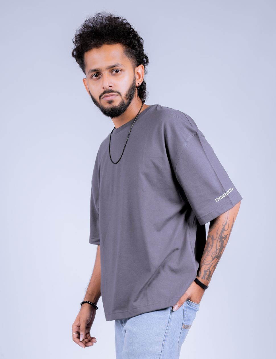 The COSHON Classic Gray Oversize Tee features a cool, neutral gray tone and a comfortable, relaxed fit, making it the perfect versatile piece for a modern, laid-back style.