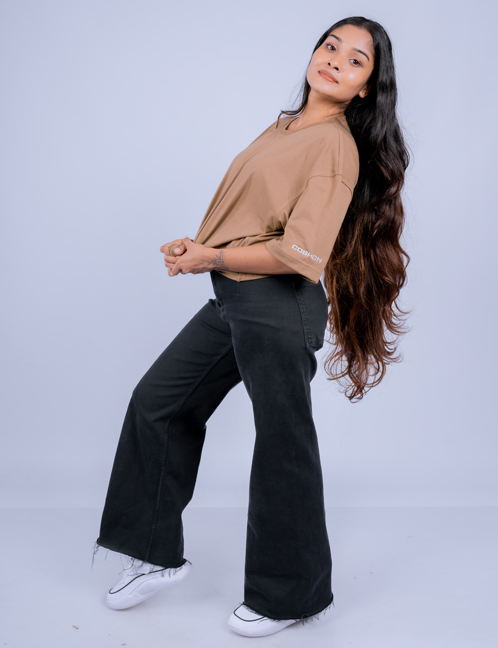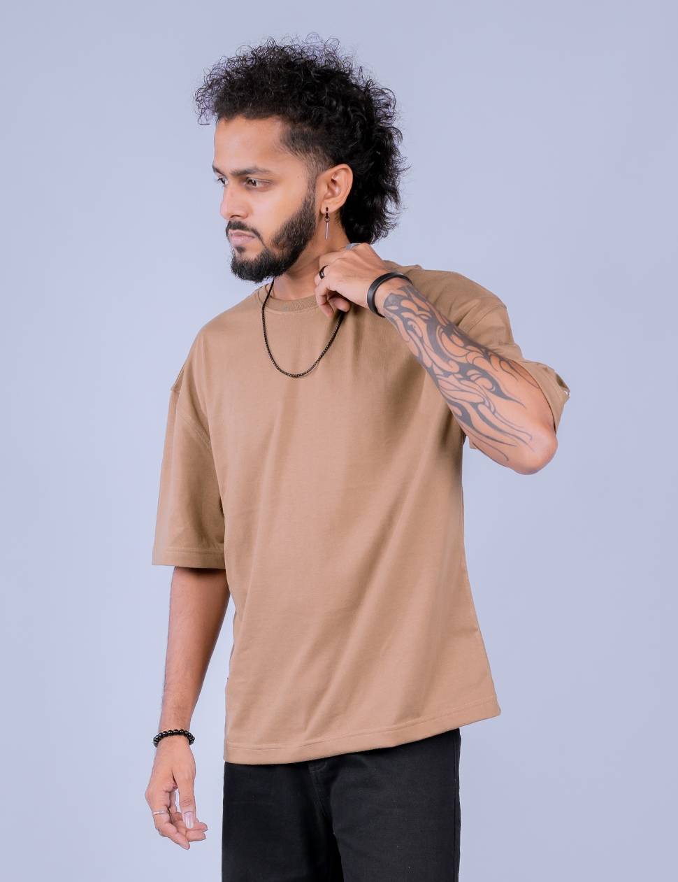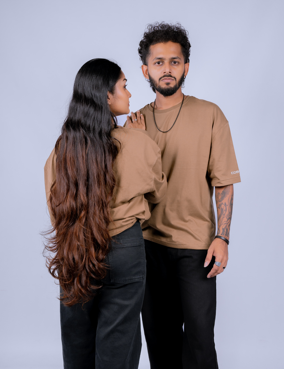 The COSHON Classic Cocoa Beige Oversize Tee combines a warm, earthy tone with a relaxed fit, offering a stylish, comfortable option for a laid-back yet refined look. Perfect for effortless everyday wear.