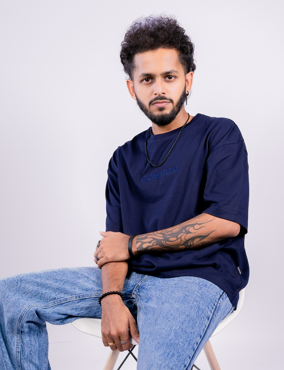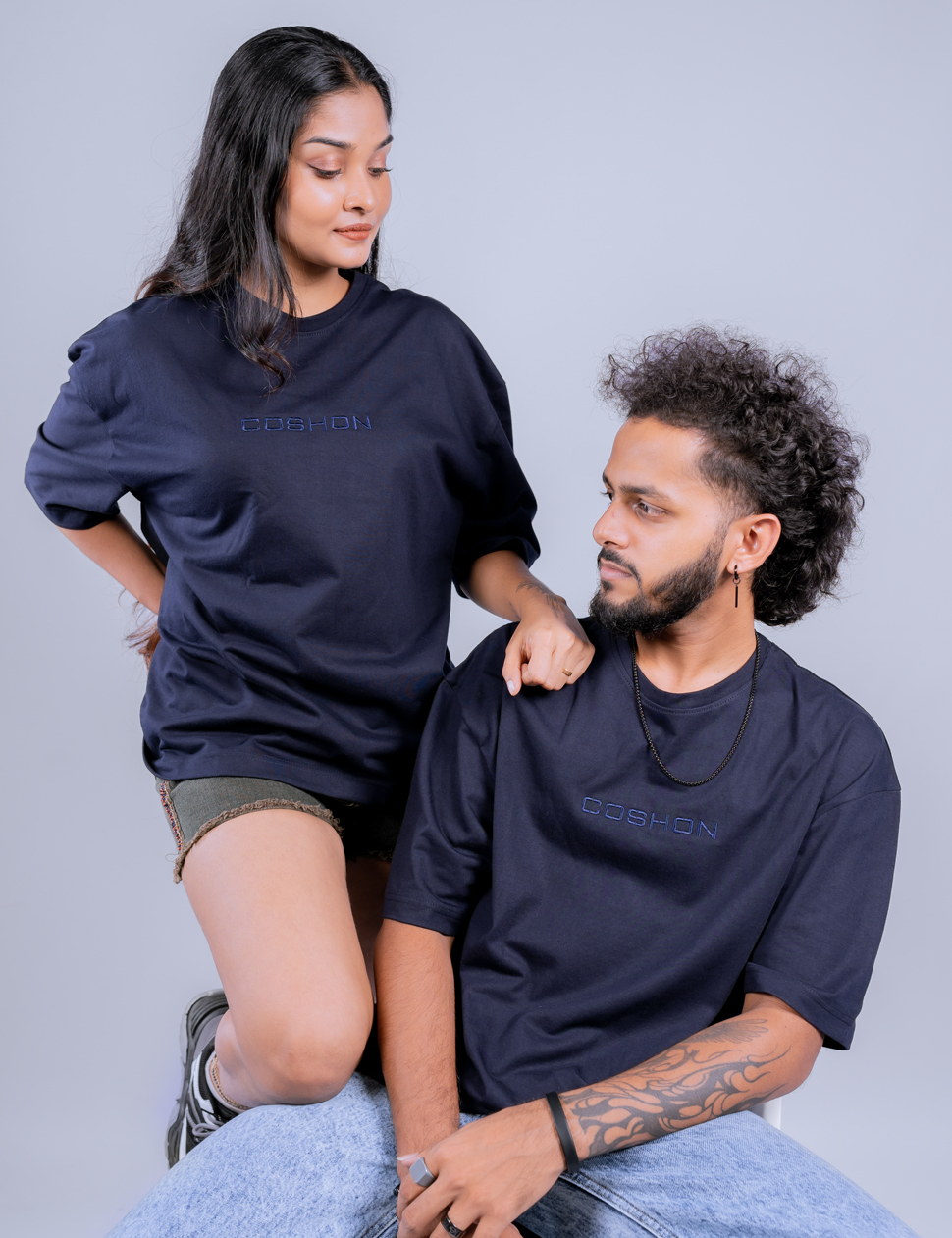 Dive into luxury with this rich blue oversized t-shirt, perfect for effortless chic..